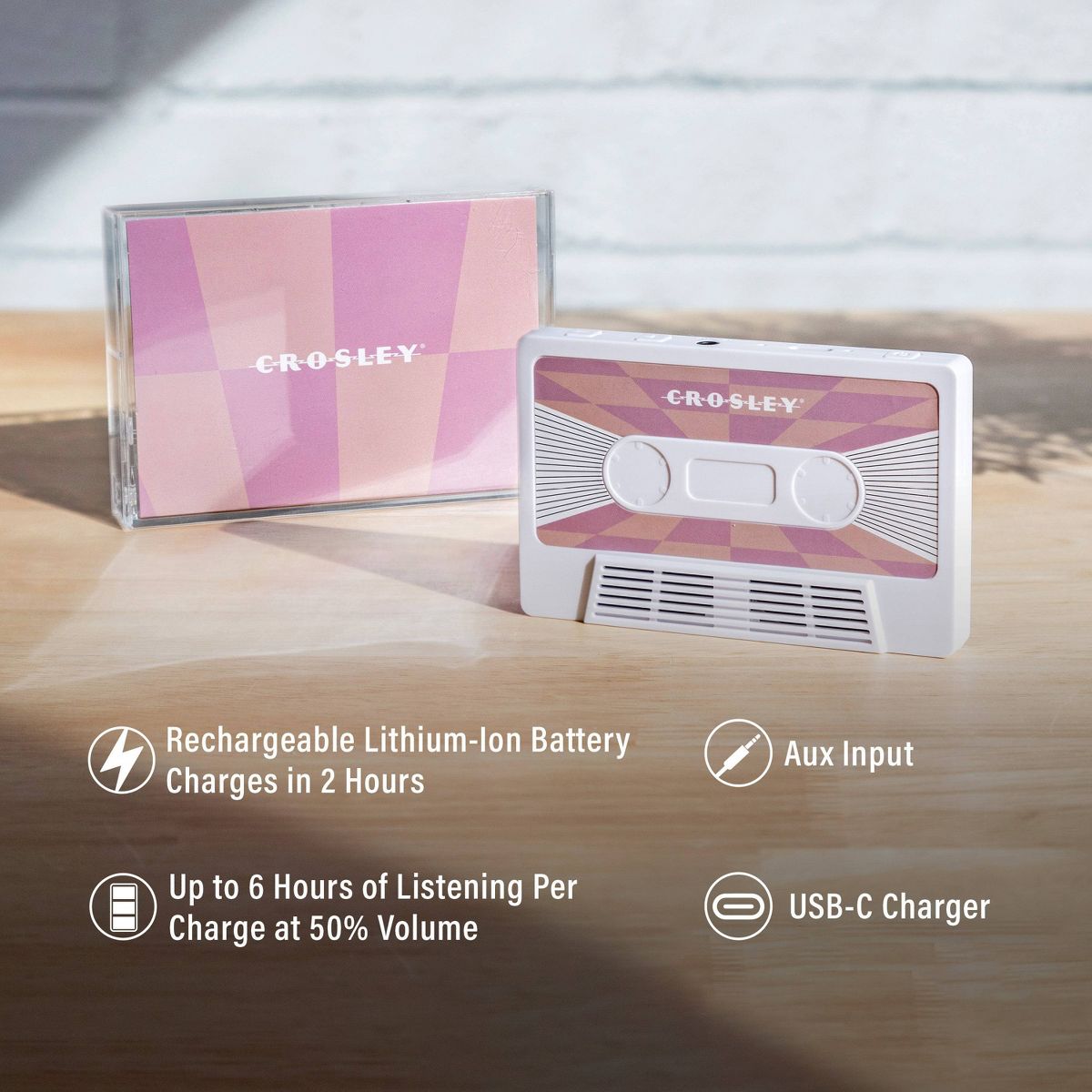 Crosley Cassette Bluetooth Speaker - White: Portable, USB Charge, Rechargeable Battery
