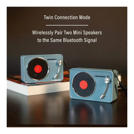 Crosley Mini Record Player Portable Bluetooth Speaker - Tourmaline: USB-C, 8 Hour Battery