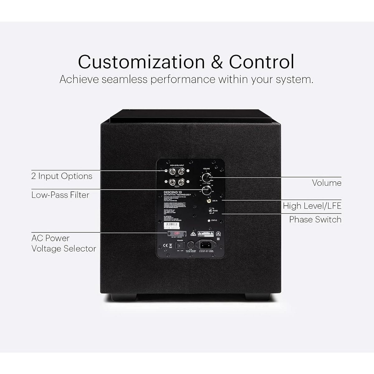 Definitive Technology Descend DN10 10" Subwoofer Digitally Optimized for Movies and Music, Black