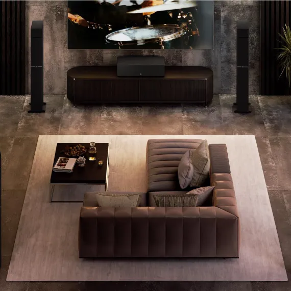 Level up your home theater audio with the Definitive Technology Dymension DM80 Flagship Tower Speaker - a bipolar floorstanding speaker. DM80's fully balanced bipolar arrays are adjusted to optimize for room placement and hold a rear-array attenuation switch for near-wall placement. The 3XR Architecture combines an integrated 12” powered subwoofer powered by an all-new, high-performance GaN FET 400W amplifier and two passive radiators. Its four 5.25" mid/bass BDSS woofers for superior midrange detail and custom aluminum oxide tweeters for explicit voice provide a smooth extended response with crisp transients and exceptional definition. To get deep-bass performance, it has a Patented Intelligent Bass Control that blends subwoofer output with mids and highs. This speaker also has a Patented Linear Response Waveguide that extends off-axis dispersion for total sonic immersion. Connect the integrated DM90 Height Module (sold separately) to DM80 Tower Speaker for hyper-realistic overhead effects. Be it an onscreen movie drama or hearing the sonic details while gaming, this tower speaker always performs to the best of its caliber. The consistent sound across Definitive Technology gives you the flexibility to mix and match Dymension, Dymension CI, and Mythos speakers, which can be voice-matched to design a complete home system.