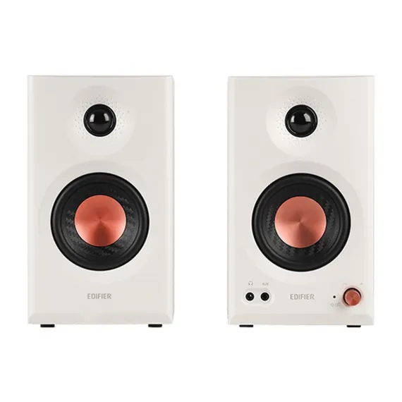 Edifier 36-Watt-Continuous MR3 Powered 2.0 Studio Monitor Speaker Set with 3.5-In. Woofers, Hi-Res Audio, TRS/Aux/RCA Inputs, Pair (White)