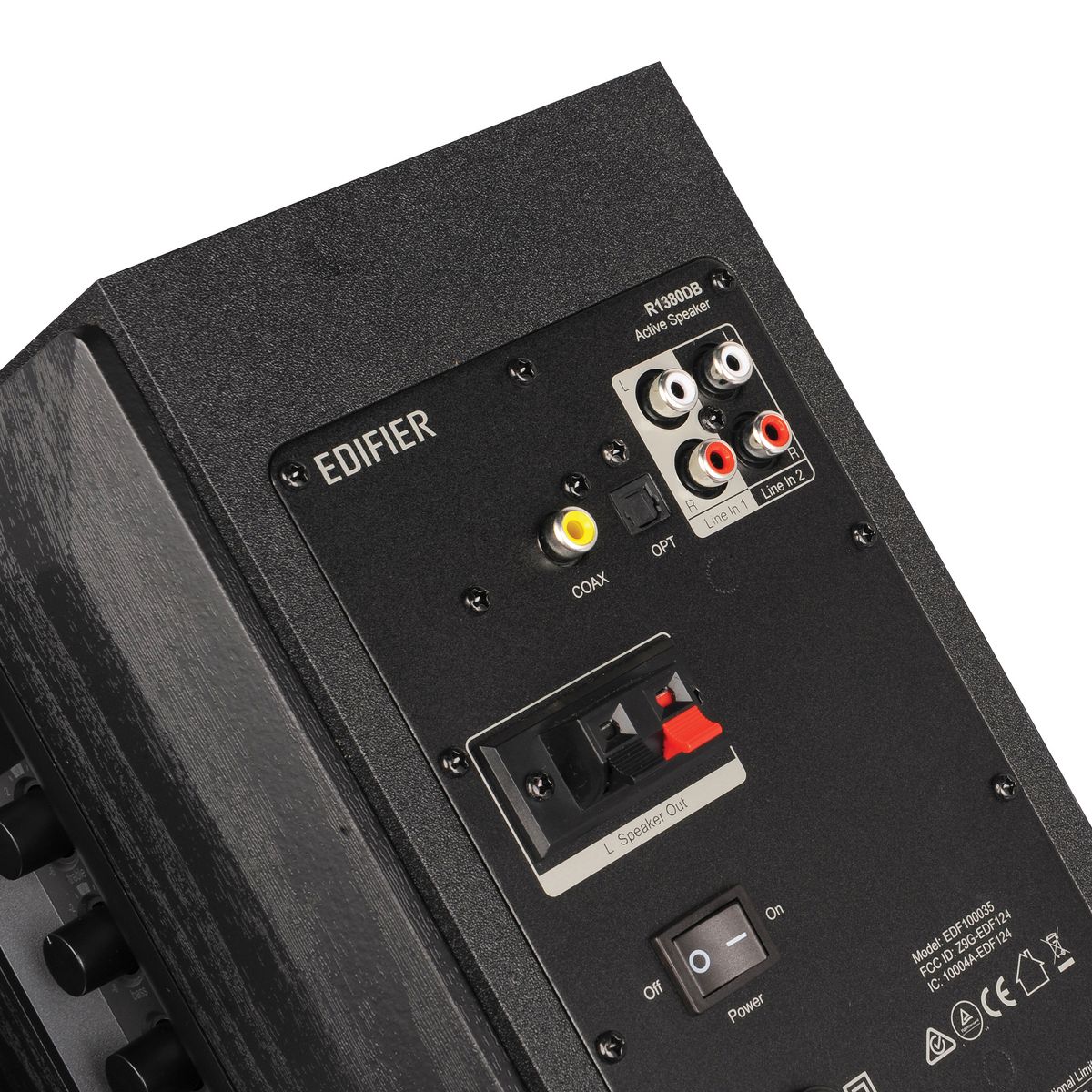 Edifier 42-Watt-Continuous Bluetooth® Professional R1380DB Powered Bookshelf Speaker Set with 4-In. Woofers, RCA/Optical, and Remote, Pair (Brown)