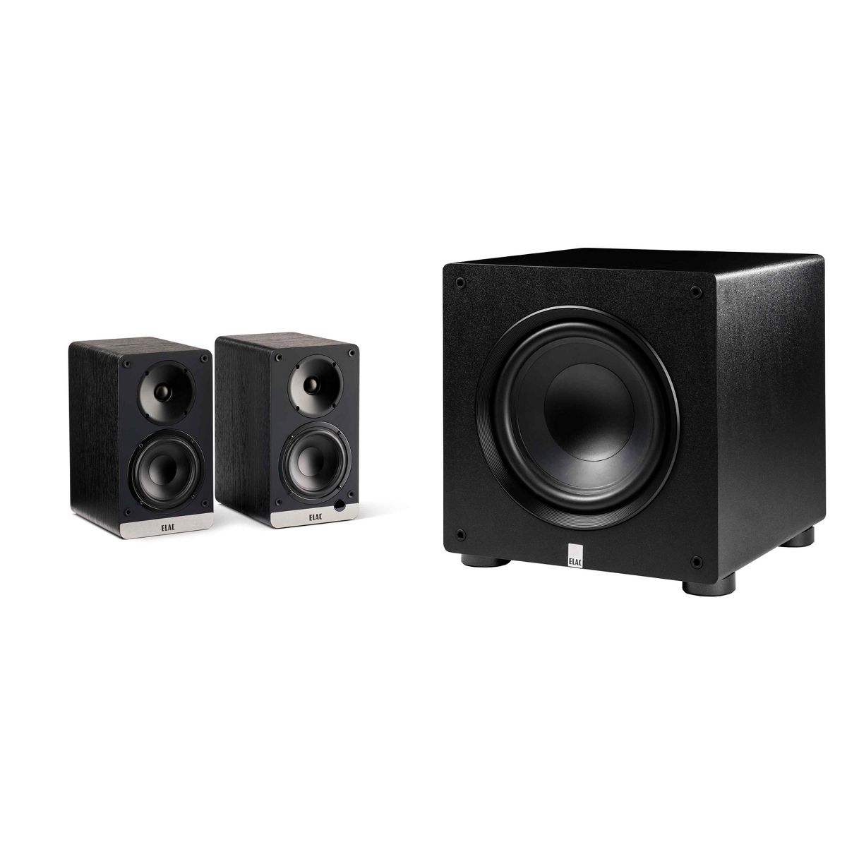 Introducing the Elac Audio Power Bundle, featuring the Elac DCB41-BK Debut ConneX 4.5" Powered Speakers and the Elac PS350-BK Varro Premium 12" 350 Watt Powered Subwoofer with Auto-EQ. The DCB41-BK Powered Speakers offer exceptional audio with versatile inputs including HDMI ARC, Bluetooth, and USB, delivering 50 watts x 2 of amplification, ¾” soft dome tweeters, and 4-1/2” polypropylene woofers for a frequency response of 66Hz-25,000Hz. With a compact design and various connection options like HDMI ARC, Bluetooth AptX, and more, these powered speakers make adding high-fidelity audio effortless. The PS350-BK Subwoofer complements your setup with 12” treated paper cone driver, 350/700 Watts of power, BASH Amplification, and Auto EQ system for optimal performance. The subwoofer boasts a frequency response of 24Hz to 150Hz, delivering deep bass with a maximum output level of 108 dB. With an elegant cabinet design, advanced features such as DSP, app control, and custom amplifier and driver, the Elac Audio Power Bundle provides unbeatable power, performance, and modern design for an immersive audio experience. Get ready to elevate your home theater or music setup with this premium audio bundle.