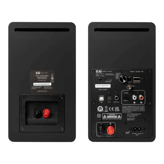 On the other hand, the Elac DCB41-OR Powered Speakers feature a Bass Reflex/Powered speaker type, 50 Watts x 2 amplifier power, and ¾” soft dome tweeter. With various inputs including HDMI ARC, USB, Bluetooth AptX, and optical, these speakers offer versatility and premium sound quality. Measuring at 5-1/2” x 9-5/8” x 8” and weighing 7.6lbs (Powered) and 6.3lbs (Passive), the DCB41-OR speakers provide a comprehensive audio solution.