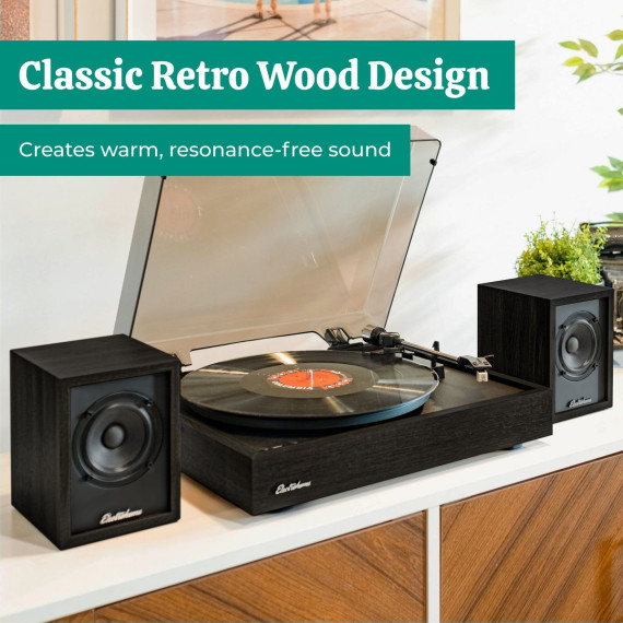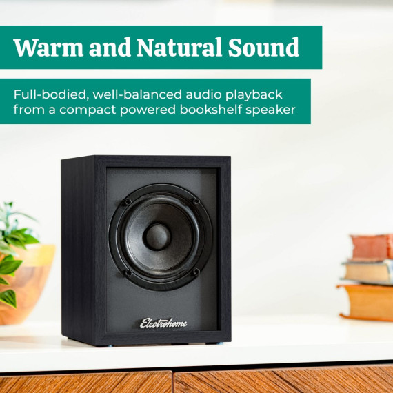 The Electrohome Huntley Powered Bookshelf Speakers offer excellent performance while effortlessly connecting to any audio source so you can focus on the music. Adorn any music sanctuary with these retro-inspired powered speakers without sacrificing modern features.