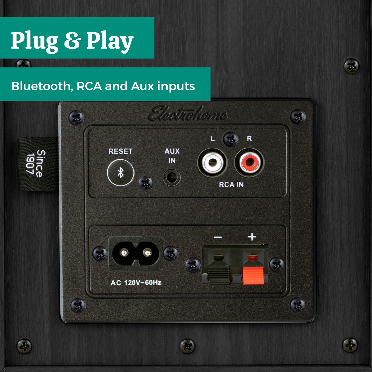 Focus on music, not manuals. Conveniently connect to any source device through RCA, Aux-In, or Bluetooth 5 without needing additional components or complicated setups. Switch between sources with the intuitive remote featuring customizable bass and treble EQ adjustments.
