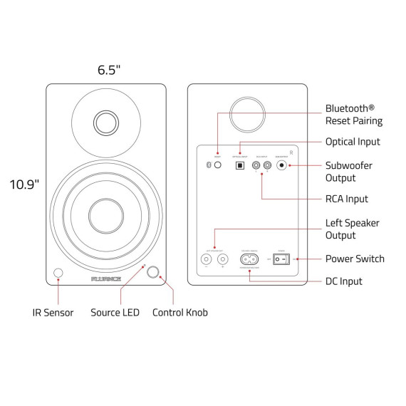 What's Included: Ai41 Powered Bookshelf Speakers (pair), Remote Control, 2x AAA Batteries, 6ft Power Cable, 8ft 18 Gauge Speaker Wire, Two Isolation Pads, Quick Start Guide, Fluance Catalog, 2 Year Manufacturer's Warranty