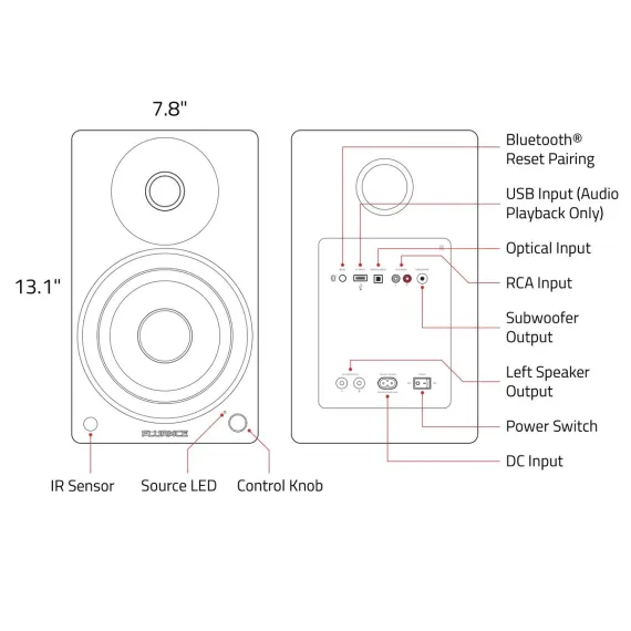 What's Included: Ai61 Powered Bookshelf Speakers (pair), Remote Control, 2x AAA Batteries, 6ft Power Cable, 8ft 18 Gauge Speaker Wire, Two Isolation Pads, Quick Start Guide, Fluance Catalog, 2 Year Manufacturer's Warranty