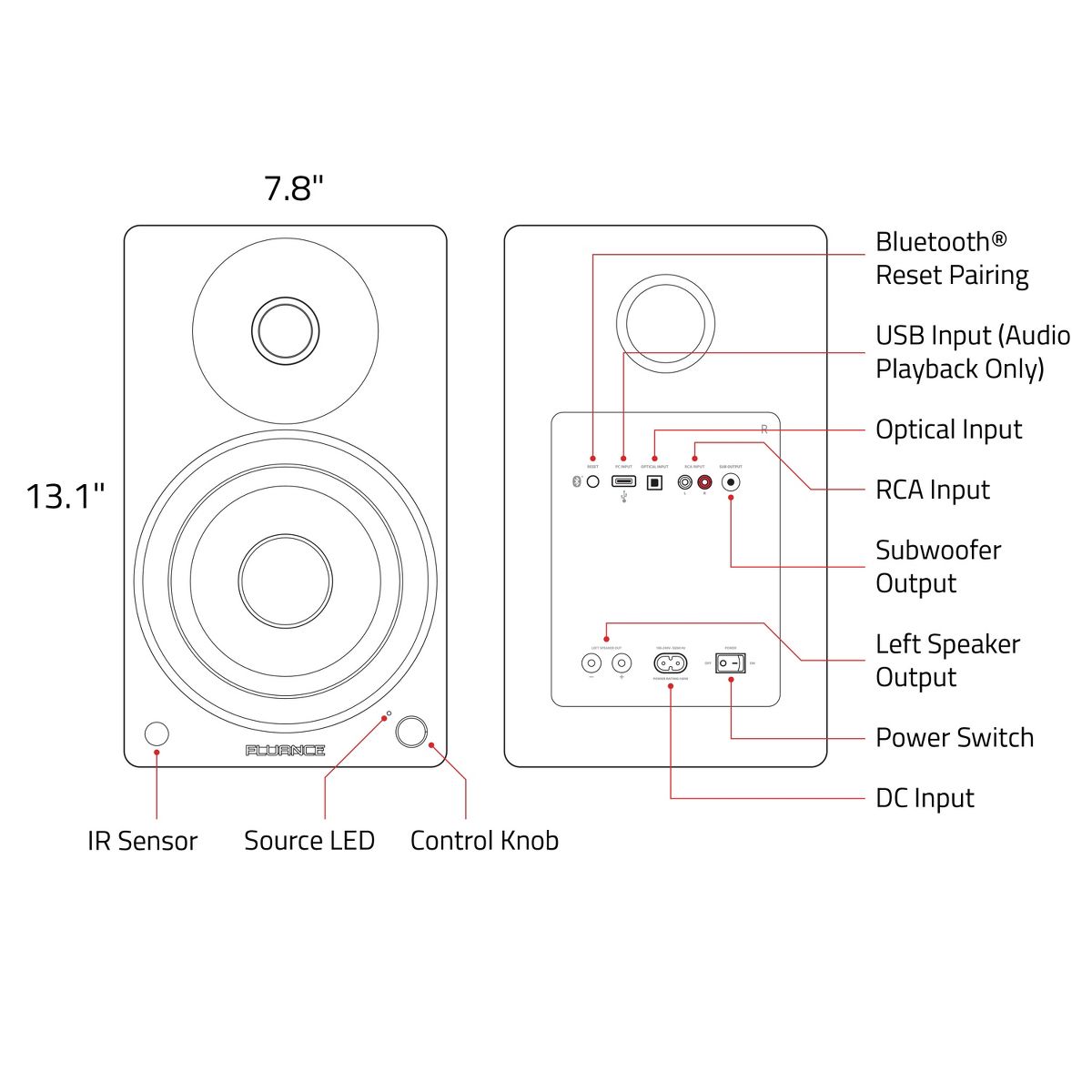 Forget stripping speaker wire or mapping inputs on an audio receiver; these powered bookshelf speakers easily connect through Bluetooth, RCA, Optical and USB connections, for all your audio needs. Add even more bass with the sub out connection. Customize your sound profile with the adjustable EQ.