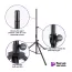 This lightweight Focus Pro Audio All-Aluminum Speaker Stand Pack includes everything needed to support two speakers on individual stands. The lightweight stands feature versatile reversible poles that support all standard speaker cabinet mounting sockets, and their height adjusts to accommodate a variety of applications. Heavy-duty construction, braced bases, and nonslip feet work together to deliver exceptional stability and load balance even on irregular surfaces. The durable black finish preserves the professional appearance of any space. For convenient storage and ergonomic transportation, the tripod bases fold flat, and all the components fit into an included carrying bag with a shoulder strap and top handles..