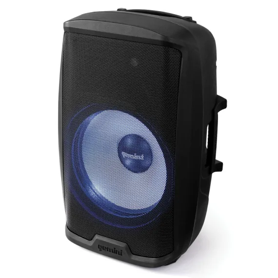 The Gemini AS-2115BT-LT-PK is a portable PA speaker kit that includes the AS-2115BT-LT speaker, speaker stand, and wired microphone. The lightweight, ultra-efficient powered 2,000-watt active 15-In. Bluetooth loudspeaker with its LED party lighting is designed for optimal performance, no matter where you take it. It is a 2-way full-range PA speaker with room-filling sound in a compact, durable enclosure. Its 15-in. low-frequency driver with 2-in. voice coil and pure titanium 1-in. high-frequency compression driver provide the ideal combination of deep low and crystal clear high frequencies. The built-in media player allows for MP3/WAV playback via USB and SD card as well as FM radio. The portable PA speaker kit also includes an XLR microphone with cable and a speaker stand that elevates the speaker for optimal sound dispersion. With so much power under the hood in a compact package, this portable PA speaker kit is ideal for any occasion.