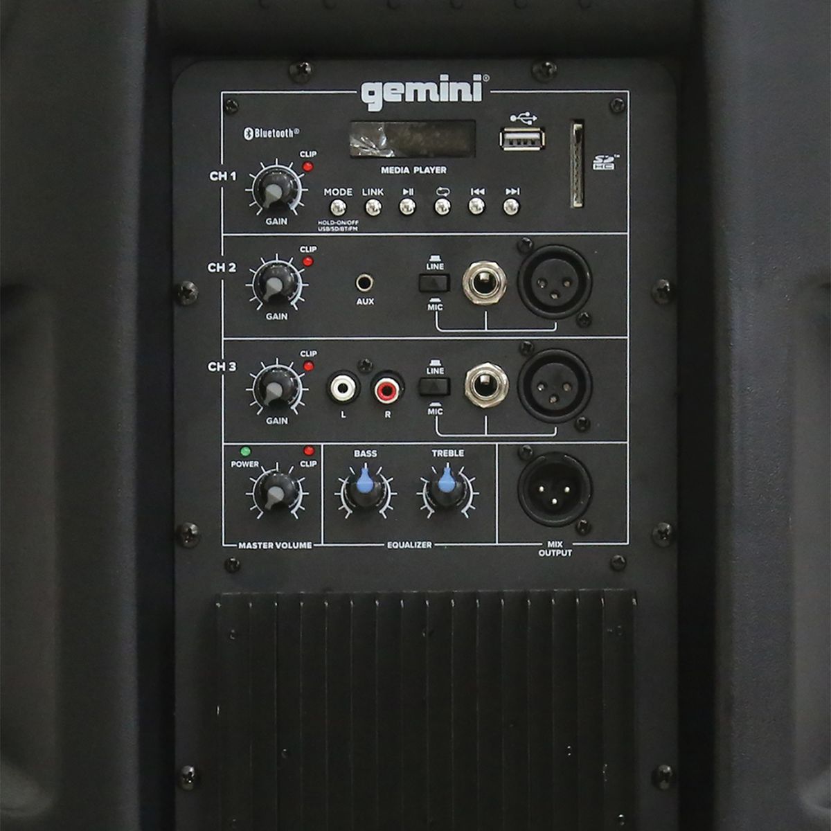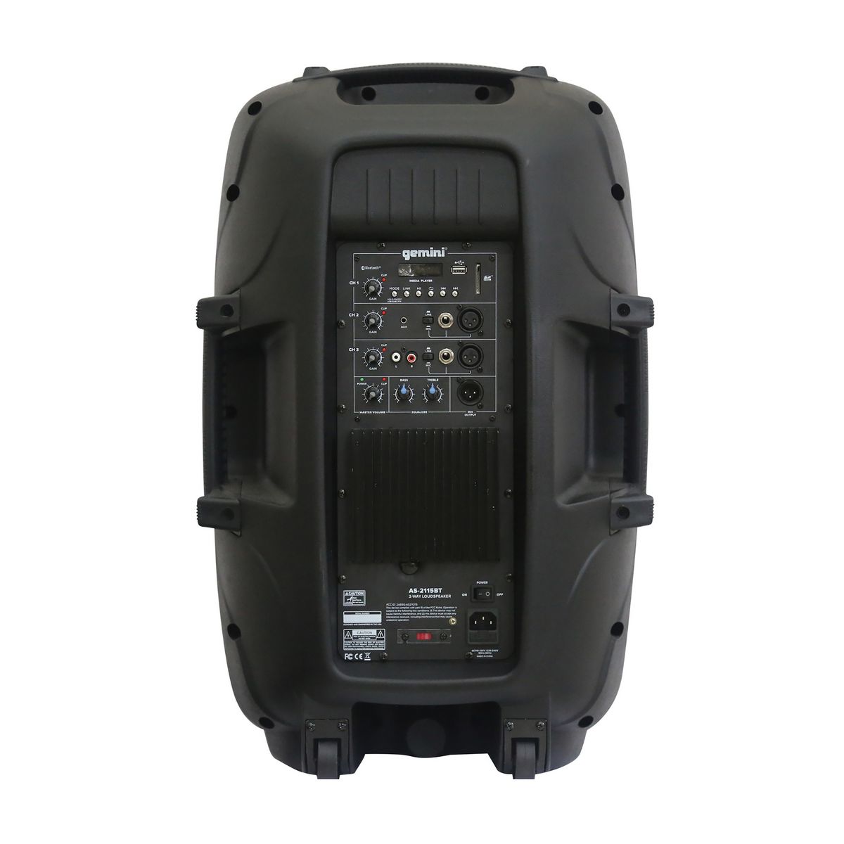 Gemini® AS Series Bluetooth® Portable PA Speaker with 3 Input Channels, Media Player, and FM Radio, Black, AS-2115BT