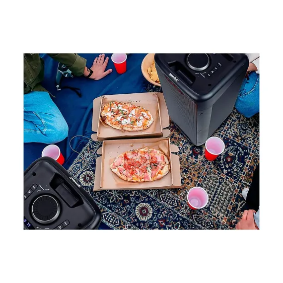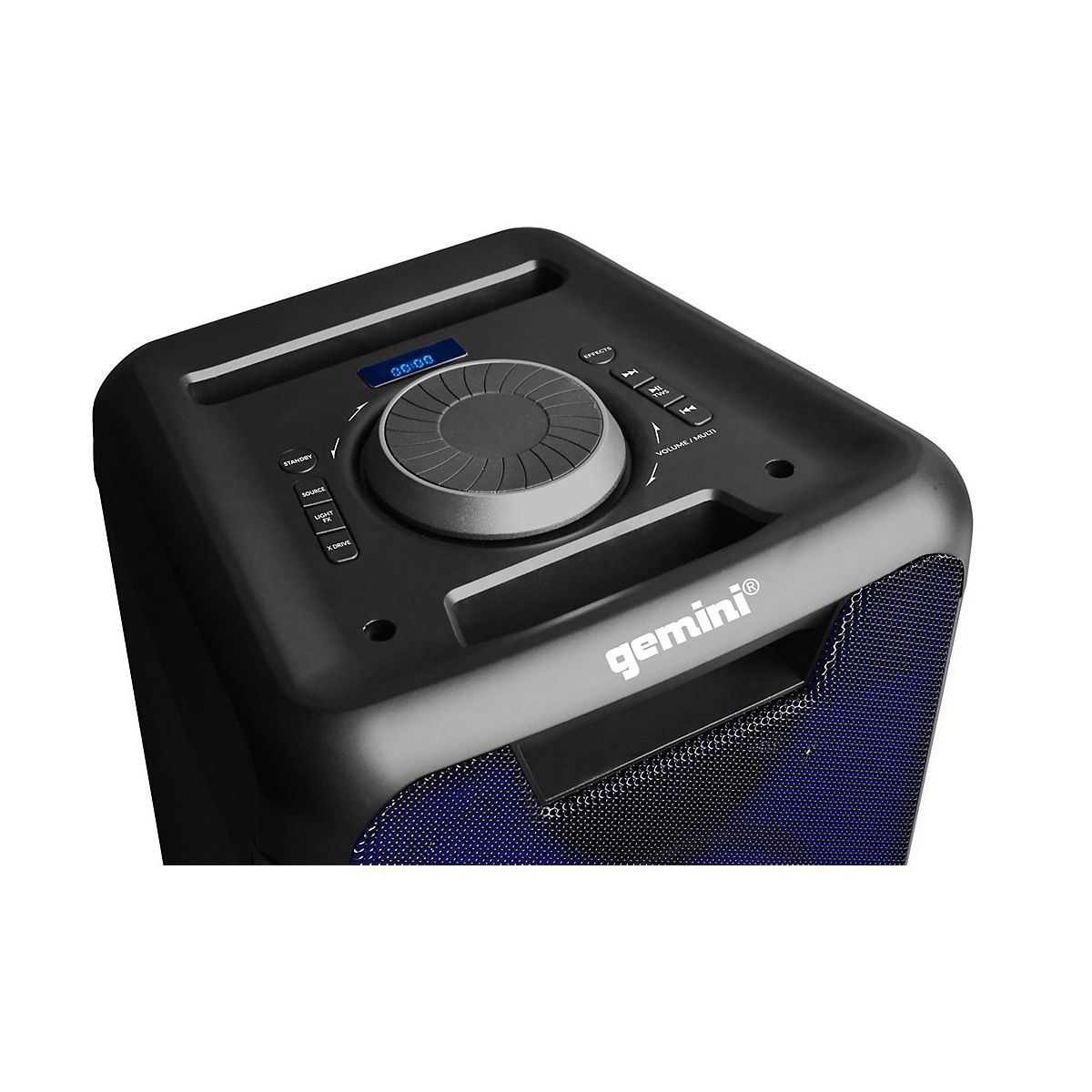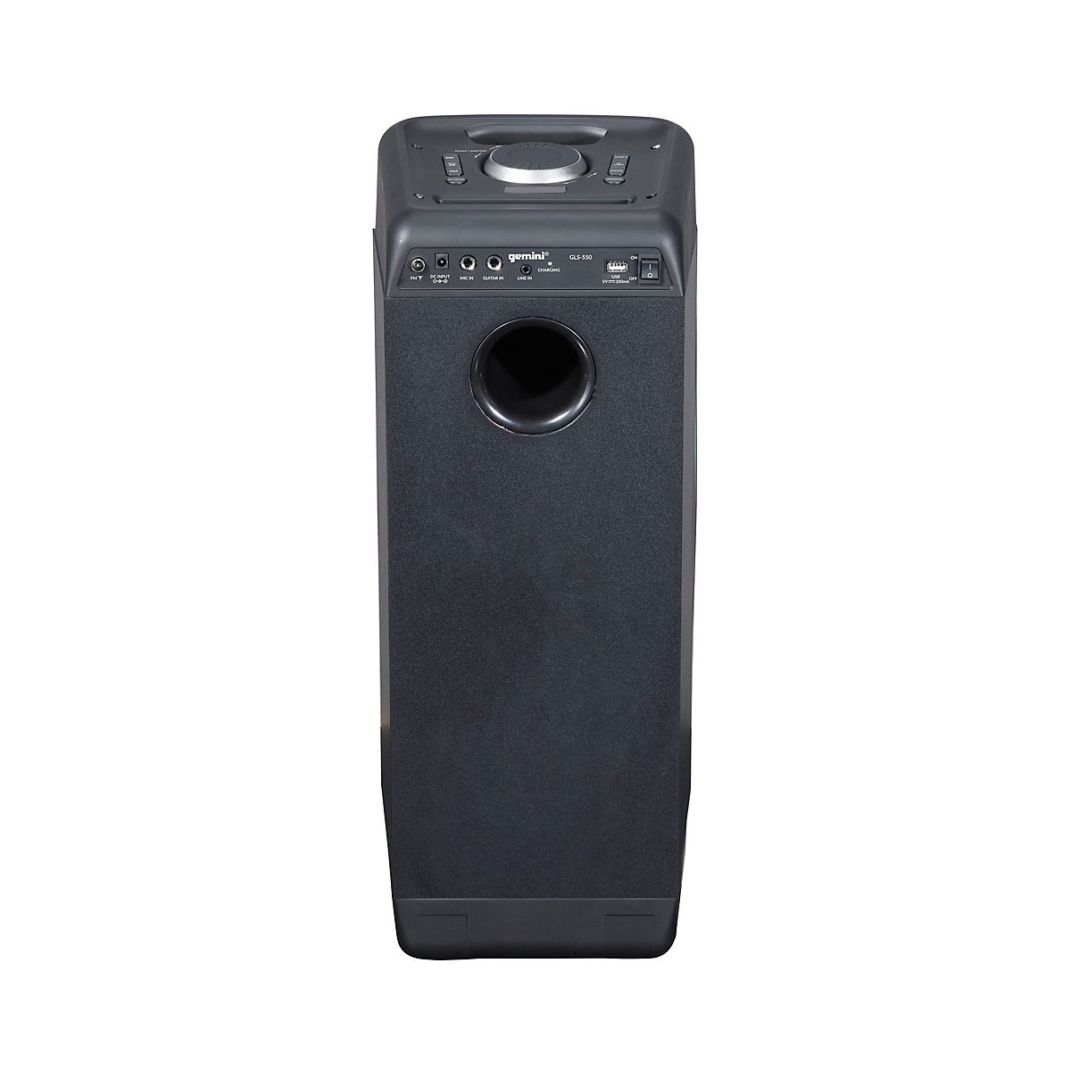 The Gemini GLS-550 Portable Party System features dual 6.5" woofers and adjustable beat-synced party lights. Delivering 800 watts peak power with a built-in rechargeable battery and built-in media player allowing for playback via Bluetooth, FM Radio and USB. The GLS-550 includes a mic/guitar input with EQ Controls. It can also pair to a 2nd GLS series speaker via TWS connection.