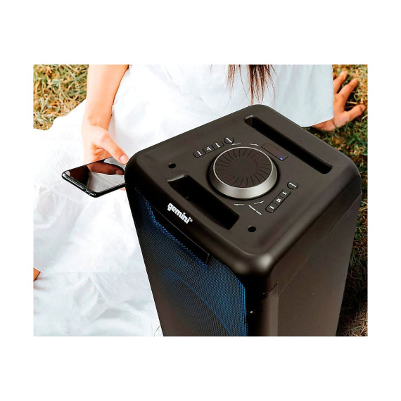 The GLS-880 Portable Party System features dual 8” woofers and adjustable beat-synced party lights. Delivering 1,000 watts of peak power with a built-in rechargeable battery and built-in media player allowing for playback via Bluetooth, FM radio and USB. The GLS-880 includes mic & guitar inputs with EQ controls. It can even pair to a second GLS series speaker via TWS connection.