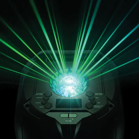The Gemini GPLT-360 is a Bluetooth Speaker System with dual 8-in. woofers and 3 tweeters plus a rear port for 360° sound. The speaker is equipped with beat-synced LED grille lights as well as Disco Party lighting on the top, sides, and rear for 360° lighting effects, turning any space into a lavish display of light and sound. This portable Bluetooth speaker can deliver 1,000 watts peak power for huge sound with X Drive Bass Boost function to really shake the room. Enjoy many hours of use with a built-in long life, rechargeable lithium battery. The on-board Media Player allows for playback via USB, plus there’s Bluetooth streaming, FM radio, and an 3.5 mm aux line in for external sources. The GPLT-360 also includes wired microphone and guitar inputs with equalization controls and echo effect. Volume, lighting, and media control buttons on top of unit and the included remote put the control at your fingertips. You can also pair a second GPLT-360 speaker (sold separately) via TWS for True Wireless Stereo connection. This Bluetooth speaker system is lightweight yet rugged and ergonomic handles plus wheels provide easy portability. The GPLT-360 will bring life to any party no matter the occasion!
