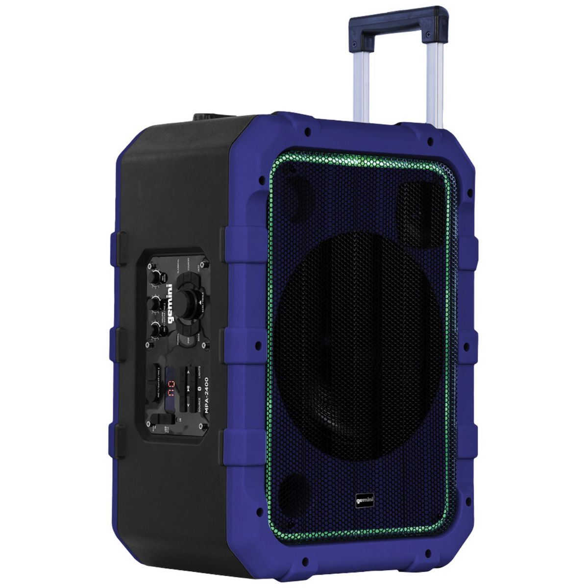 Gemini® MPA Series Portable Water-Resistant Bluetooth® Trolley Speaker with Lights and Remote, MPA-2400 (Blue)