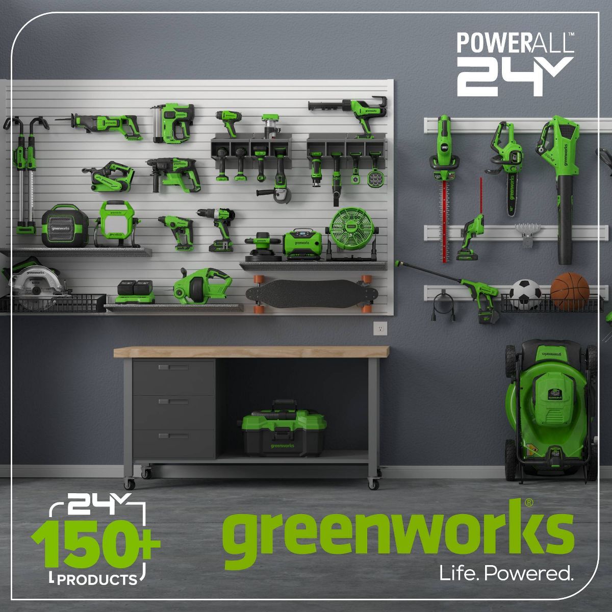 From worksites to weekend adventures, take your music to the next level with the Greenworks POWERALL 24V Bluetooth Speaker, delivering crisp, full-surround sound with high-output performance. Whether you're in the garage, on the job site, or enjoying the outdoors, this speaker keeps the beats going with hybrid power options and seamless connectivity. Includes 2.0Ah 24V battery, charger, and AC power cord. Included battery powers 150+ Greenworks 24V products.
