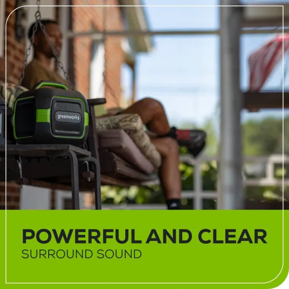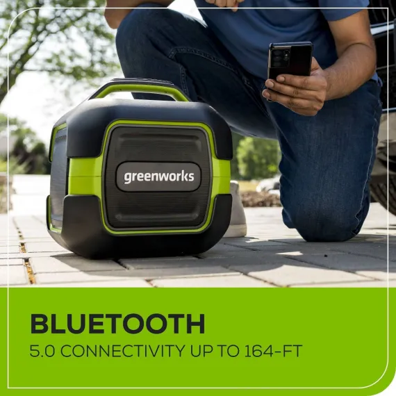 Greenworks POWERALL 24V Outdoor Bluetooth Portable Speaker with 2Ah Battery and Charger Green