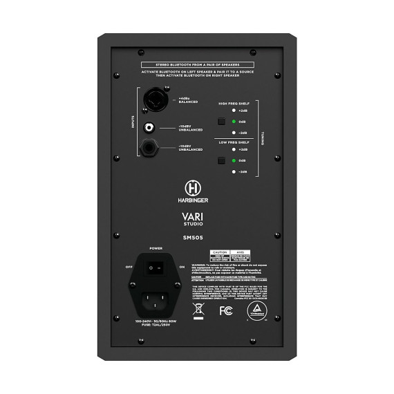 Rear-ported monitors can be finicky about placement near walls and corners, the SM505's front-ported design removes those placement restrictions, giving more flexibility without compromising low end. From the 5" low-frequency driver to the controls on the back panel for fine-tuning high- and low-frequency shelving, every component of the VARI SM505 is engineered for premium sound. The high-frequency waveguide provides exceptional stereo imaging with detailed placement across the entire soundfield, giving the accuracy need to perfect mixes.With pro sound quality, room-friendly design and intuitive controls, Harbinger's VARI SM505 makes it simple to get mixes sounding superb on any playback system. Whether 're mixing in the studio or jamming to playlists in living room, the SM505s have covered.