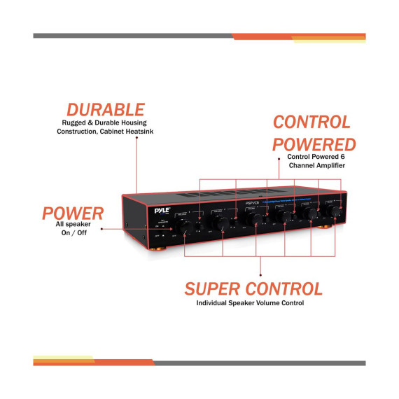 The Pyle High Power Stereo Speaker Selector (PSPVC6) is designed to provide convenient audio control for up to six pairs of speakers. With its 100-watt per channel handling capacity, this versatile selector allows you to manage multiple speaker pairs from a single amplifier without compromising sound quality. The individual volume controls let you adjust each channel independently, ensuring optimal audio performance for each speaker pair.