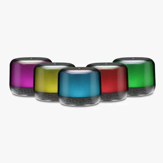 Add a fun splash of color to your favorite audio with this Bluetooth speaker that features 3 color changing light modes. Easily connect via Bluetooth and enjoy high quality sound when listening to playlists, podcasts, audiobooks, and more. The built-in rechargeable ‘mega battery’ is designed to last up to 18 hours on a single charge, and a convenient carry loop is included for on-the-go use, too.