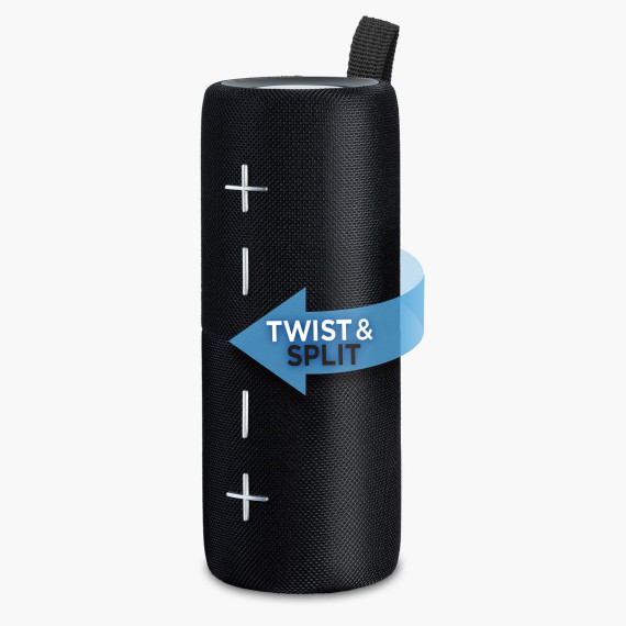 This portable Bluetooth speaker delivers rich stereo sound when streaming music, podcasts, audiobooks, and more. Certified iPX5 and designed to withstand splashes and spills, this speaker is ideal for both indoor and outdoor use. Enjoy enhanced bass performance that fills the room - play audio as one speaker, or twist apart and use as two paired speakers for the ultimate immersive experience!