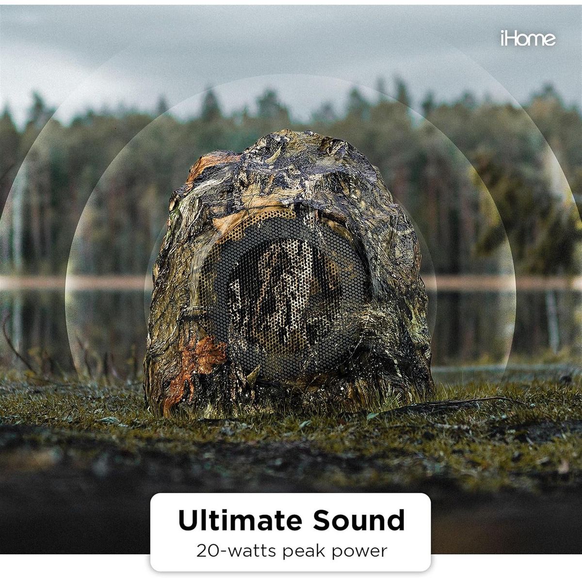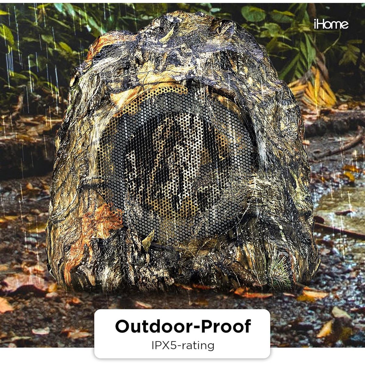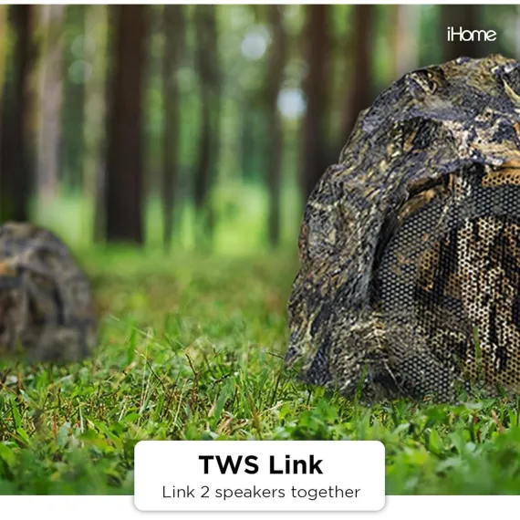 iHome IHRK-400MOBC-PR Outdoor Rock Bluetooth Waterproof Speaker Pair, Moss Oak