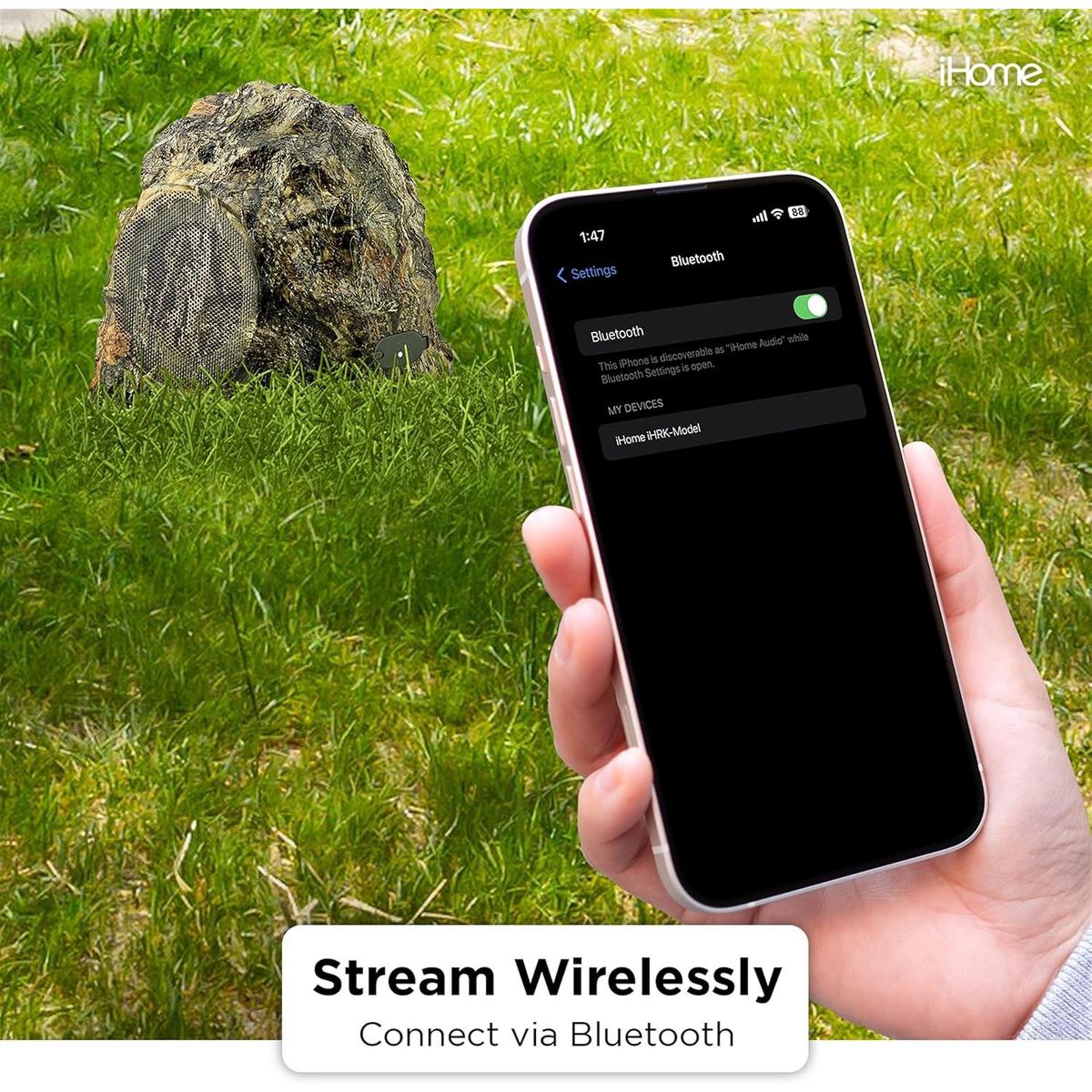 Need to outfit your outdoor deck, garden or patio with high quality wireless sound? Look no further! These 4” rock speakers are the perfect solution. The country camo oak look let’s your speakers blend right in with the natural surroundings of your yard or garden, hide them in plain sight! With a weatherproof rating of IPX5, they are resistant to water splashes from any angle so you can leave outside without worrying about the weather. Specially tuned for outdoor use, these Rock Speakers will project big clear sound perfect for open air environments. Charge with included micro USB cable. Stream music wirelessly from any Bluetooth® enabled device. The included speakers use TWS (True Wireless Stereo) linking, pair together with ease. The iHRK-400MOBC-PR is the perfect solution for your outdoor wireless audio needs and is sure to impress your friends and neighbors.