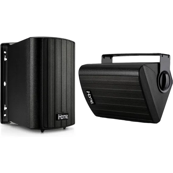iHome Waterproof Swivel Wall Mountable 4"Outdoor Bluetooth Speaker Pair Black