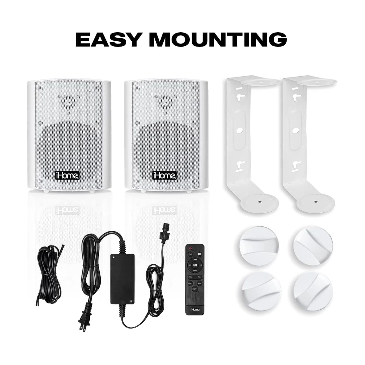 The IHSI-400BT is the ultimate solution for your outdoor Bluetooth® audio needs. These mountable speakers are ideal for Backyards and Patios, whether for home or business use. You can even install these speakers on a boat! With a waterproof rating of IP44, you won?t have to worry about leaving your speakers installed outside in the elements, they are safe from water and dust. Adjustable mounting brackets make for easy installation and allow for optimal sound dispersion. The IHSI-400BT pairs to your Bluetooth device with ease and the wireless remote puts the control in your hands. These speakers are specifically tuned for outdoor use, resulting in huge sound from a compact package so you can fill your Pool Parties, BBQs or any other outdoor event with unrivaled sound, sure to impress your guests.