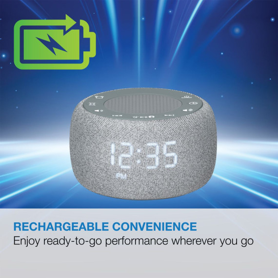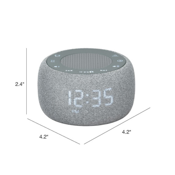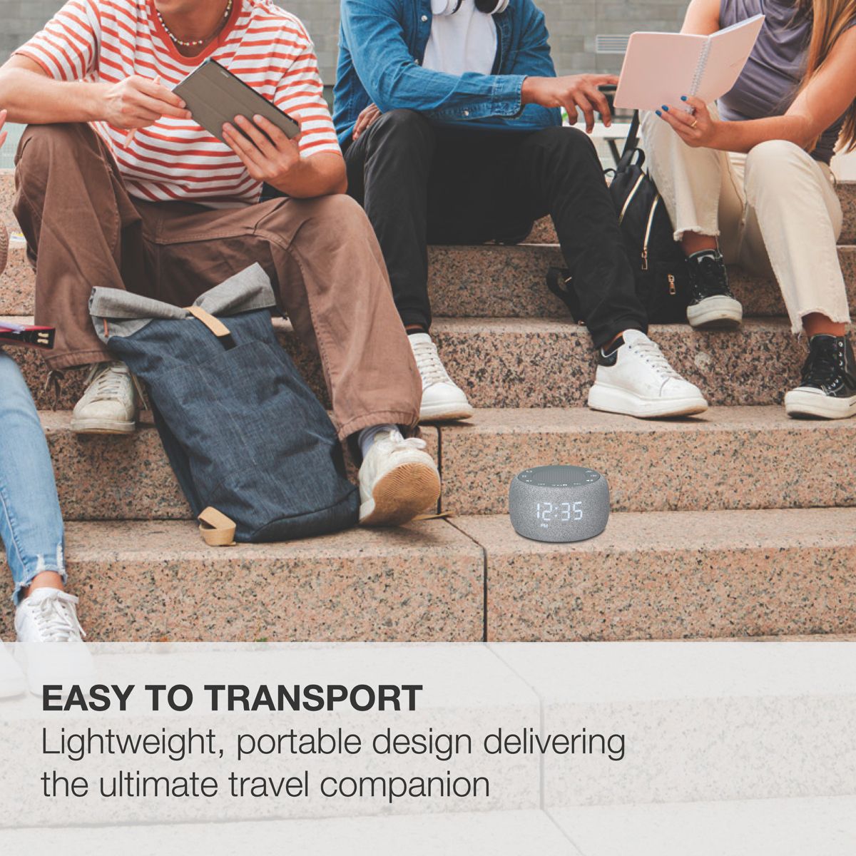 Fall asleep and rise to greet the day with gentle grace. The Gentle Wake Alarm Clock White Noise Machine lulls you with white, brown, pink, or blue noise for a restful nights sleep. Then, wake up to nature sounds ready to take on what lays ahead. With the rechargeable battery, you can take the relaxation and your wake up call with you anywhere!