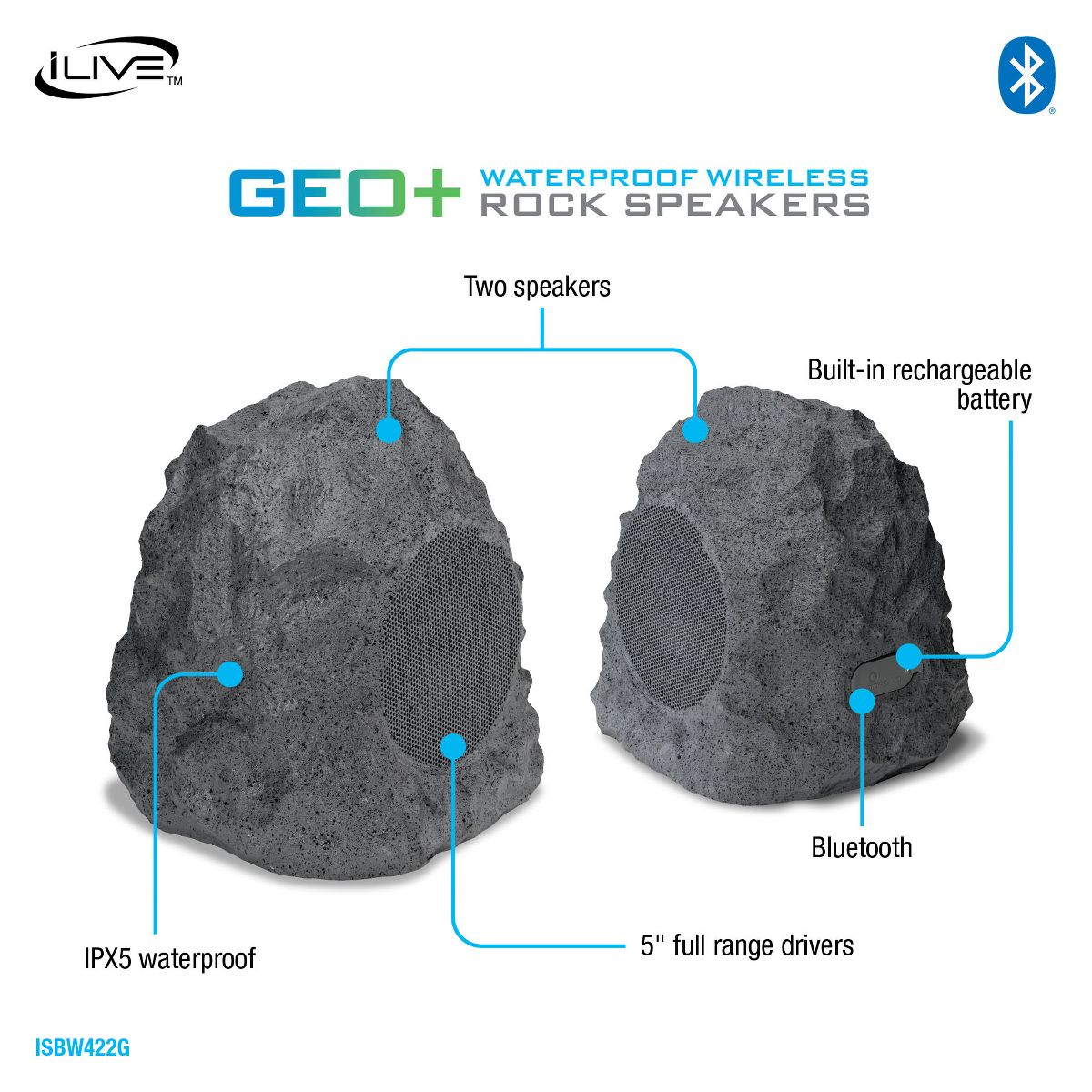 iLive Geo+ IPX5 Waterproof Wireless Speaker Pair, ISBW422G