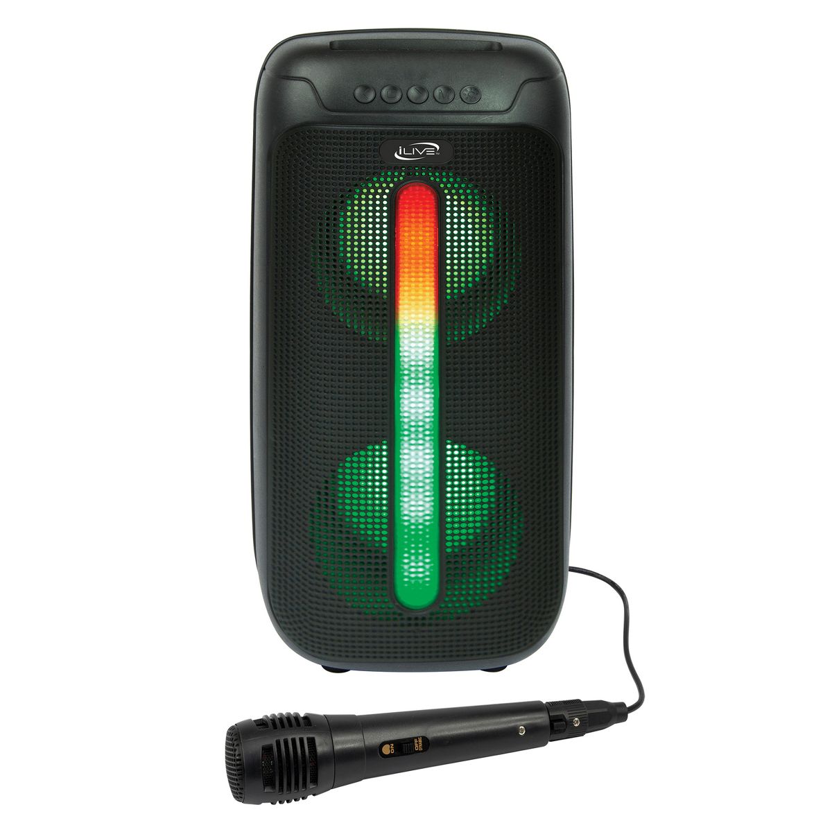 iLive Jam Time Portable Bluetooth® Speaker System with LED Lights, Microphone, and Speakerphone, True Wireless, Black, ISB293B