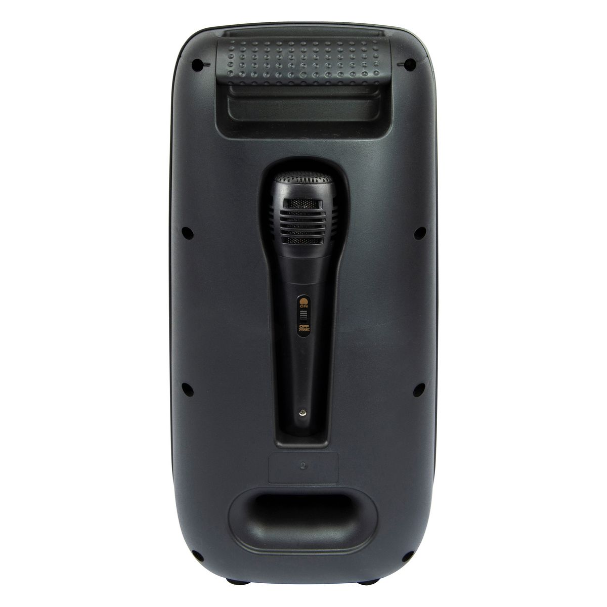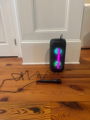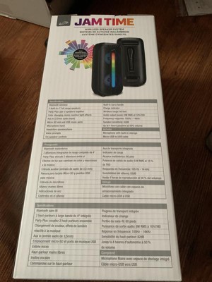 Time to bring on the jam with Jam Time from iLive Electronics™! This Bluetooth® party speaker system features color-changing LED lights and ultra-lightweight portability for your party on the go. Plug in the included microphone to add your voice to the music! Use Bluetooth® streaming or the aux input, microSD™ Card slot, or USB port for more playback options. You can also wirelessly connect another Jam Time speaker to deepen the sound and get the party going. The built-in speakerphone makes it easy to answer calls hands-free.