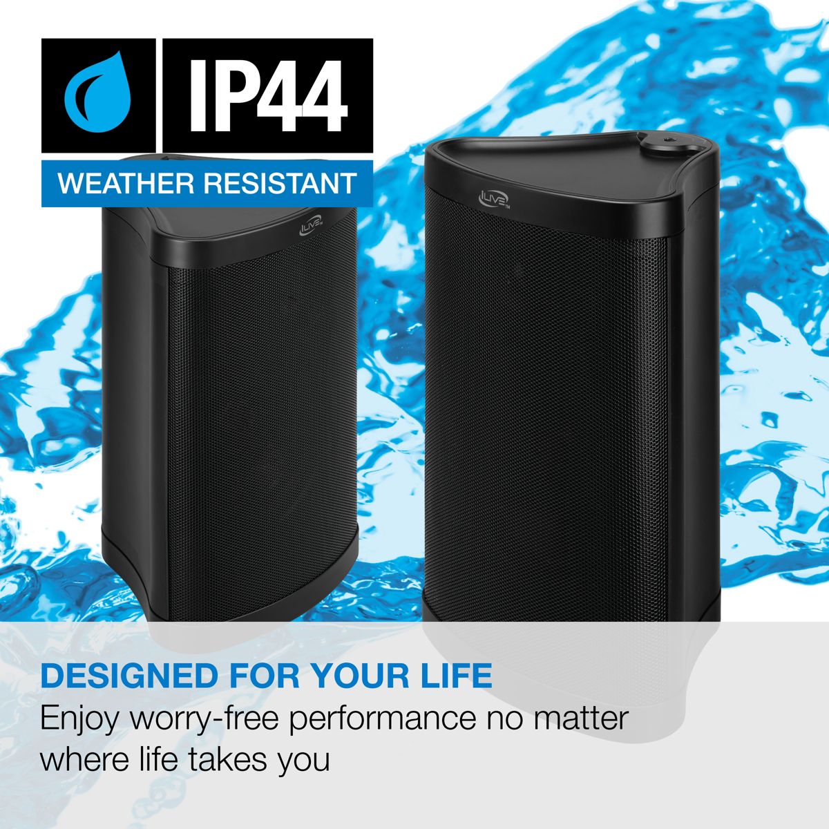 iLive Patio+ IP44 Water-Resistant Indoor/Outdoor Bluetooth Speakers, ISBW763BDL