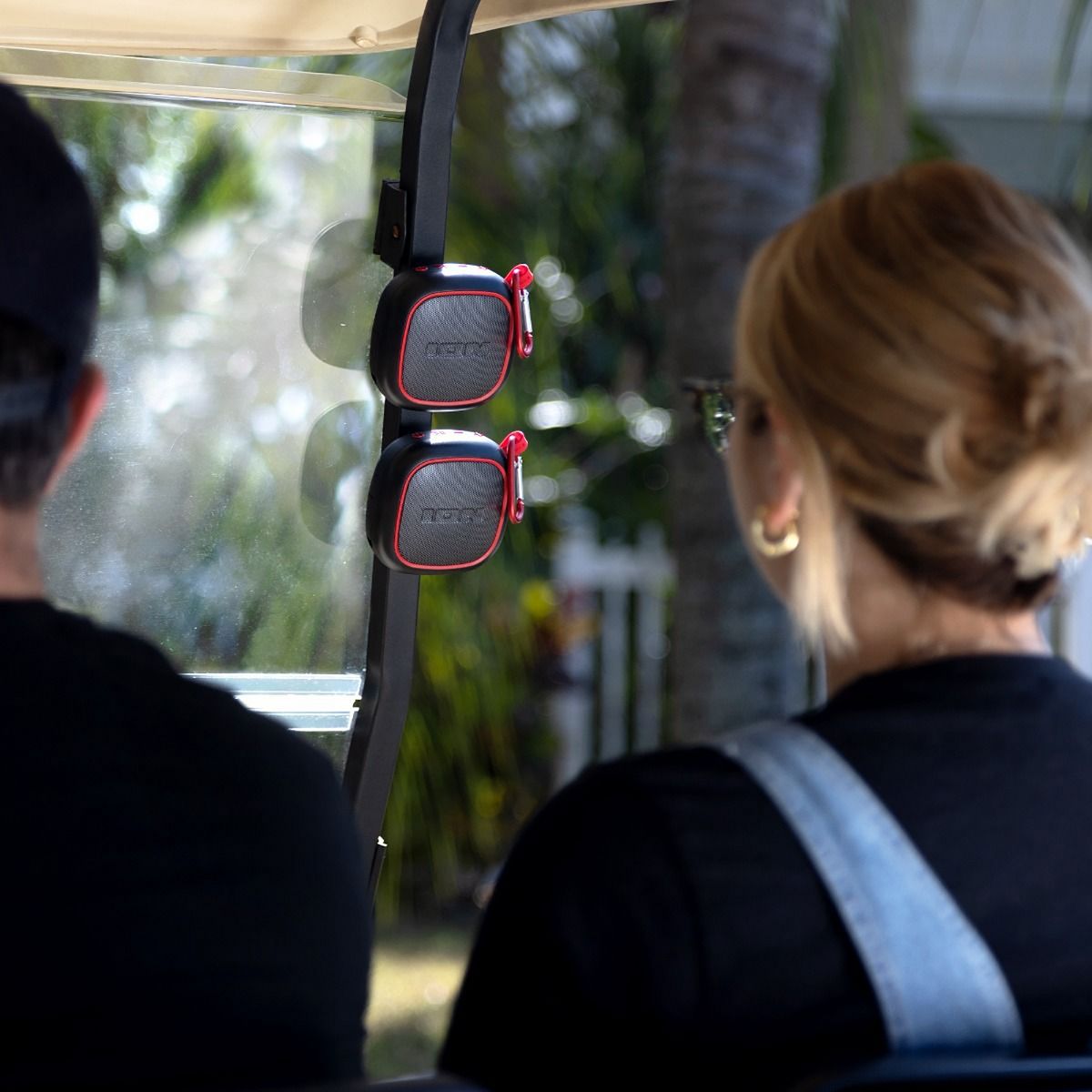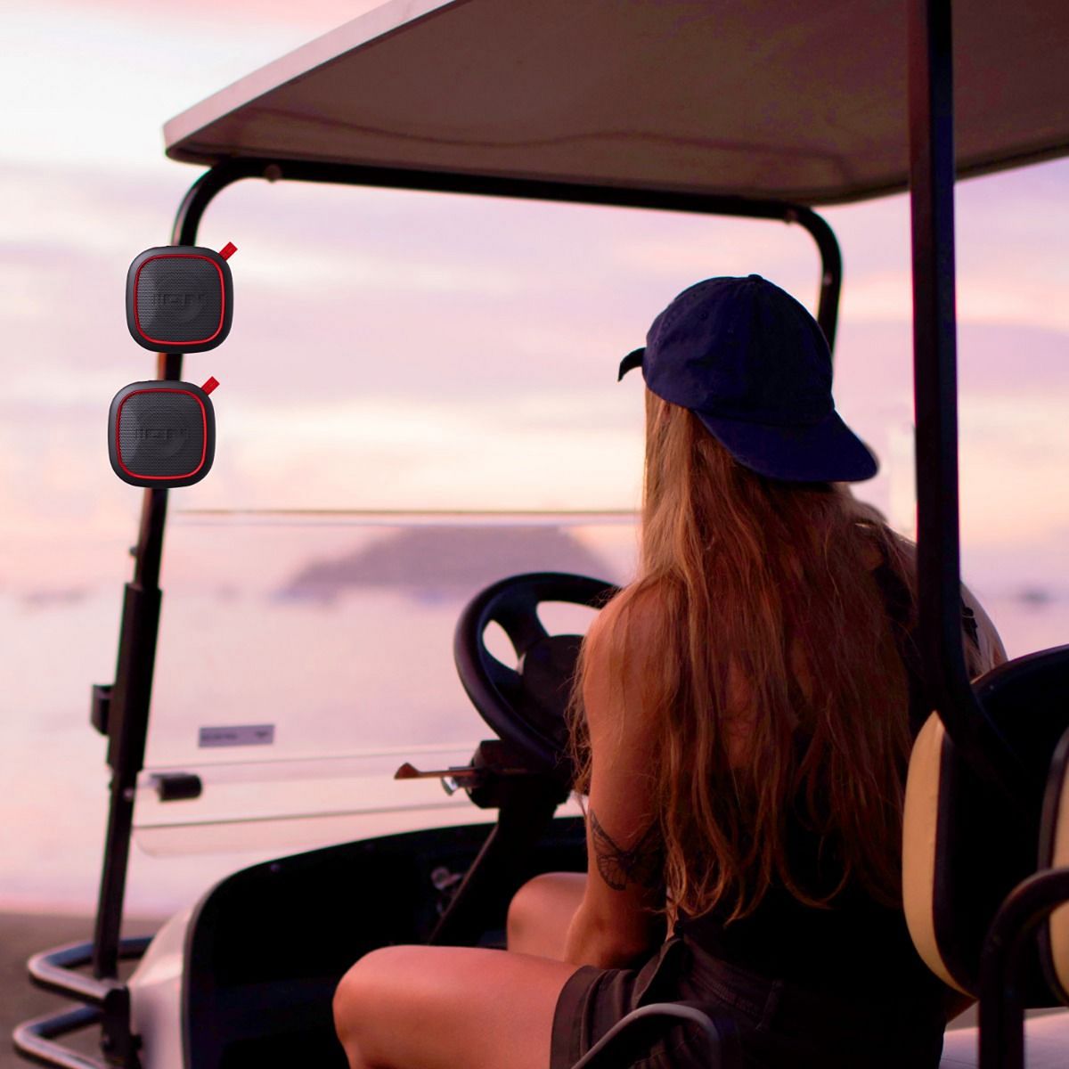 The ION® Audio Magnet Rocker™ is a convenient pair of powerful, magnetic mountable, premium Bluetooth® speakers you can secure instantly to any metallic surface. Now you can have premium sound and stream your music or audio wherever and whenever you want. You can be out with friends for a day at the beach, on a golf cart, doing work on the house with your toolbox, riding your lawnmower, or preparing a meal in the kitchen. These magnetic speakers will attach to any metallic surface, making listening to your favorite song the ultimate convenience anywhere and any day of the week. These portable wireless speakers stream music from your preferred Bluetooth®-enabled device. They also have a wireless Stereo-Link™ feature so you can wirelessly connect both speakers for real stereo sound. Their rugged design is IPX5 water-resistant and is safe to leave in the rain or near the pool or beach for uncompromising use outdoors. Each Magnet Rocker™ has a built-in 12-hour rechargeable battery for long-lasting, uninterrupted audio. This speaker package includes 2 carabiners that will allow you to easily secure and hang your speakers on a backpack, bicycle, golf cart, or kitchen appliance, making portability and ease of use a snap. Small, rugged, portable, and water-resistant, the Magnet Rocker™ 2 Pack is your ultimate on-the-go entertainment Bluetooth® speaker partner.