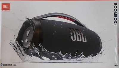 of the JBL Boombox 3 has a bold new update featuring a sturdy metal handle with silicone