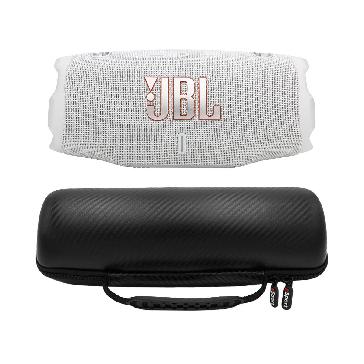 JBL CHARGE 6 Waterproof Portable Speaker Bundle with gSport Carbon Fiber Case (White)