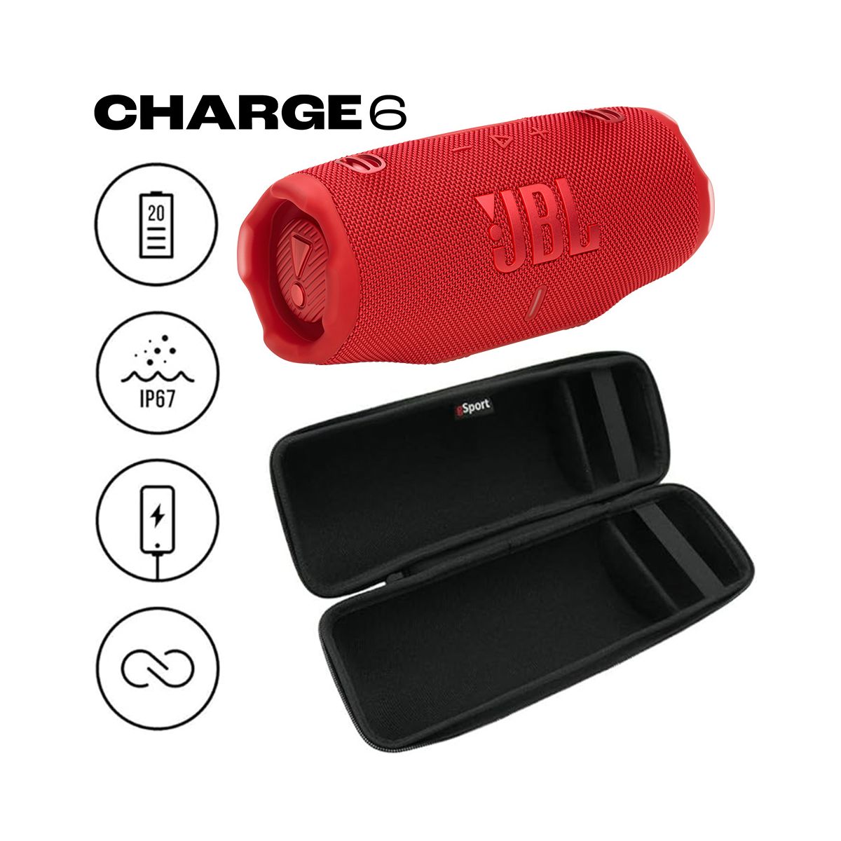 Play and charge anywhere. Like that newest season of our favorite show the JBL Charge is back and better than ever. The CHARGE 6 is everything we’ve come to love with new twists higher stakes and a bigger punch. With sound that slaps like never before better connectivity sturdier build and up to 28 hours of playtimethe CHARGE 6 is a portable audio beast. How do you pack more sound in the same iconic portable speaker package? With some redesigned hardware and our brand new JBL AI Sound Boost - a clever audio processing algorithm we’ve included under the hood. The end result? The CHARGE 6 hits way above it’s weight class filling our space with full rich immersive sound - without taking more space on our table. The CHARGE 6 is also one of the toughest portable speakers out there. It’s waterproof dustproof and drop-proof so it takes a beating without missing a beat. And true to its name the CHARGE 6 still includes a built-in powerbank to charge your mobile device while you continue to jam out to your tunes. What could be better than a new JBL CHARGE 6 in our lives? How about two? or four? Now you can effortlessly connect with other Auracast enabled JBL speakers to cover more ground (and more ears) with the same playlist whether we’re throwing the most sensational rooftop soiree or getting the crowd hyped before the ultimate pickle ball tourney. This is THE JBL CHARGE 6. Portable audio like we’ve never heard it before. Our Exclusive Bundle includes a gSport Carbon Fiber protective hardshell carrying case that holds your JBL CHARGE 6 and its accessories.