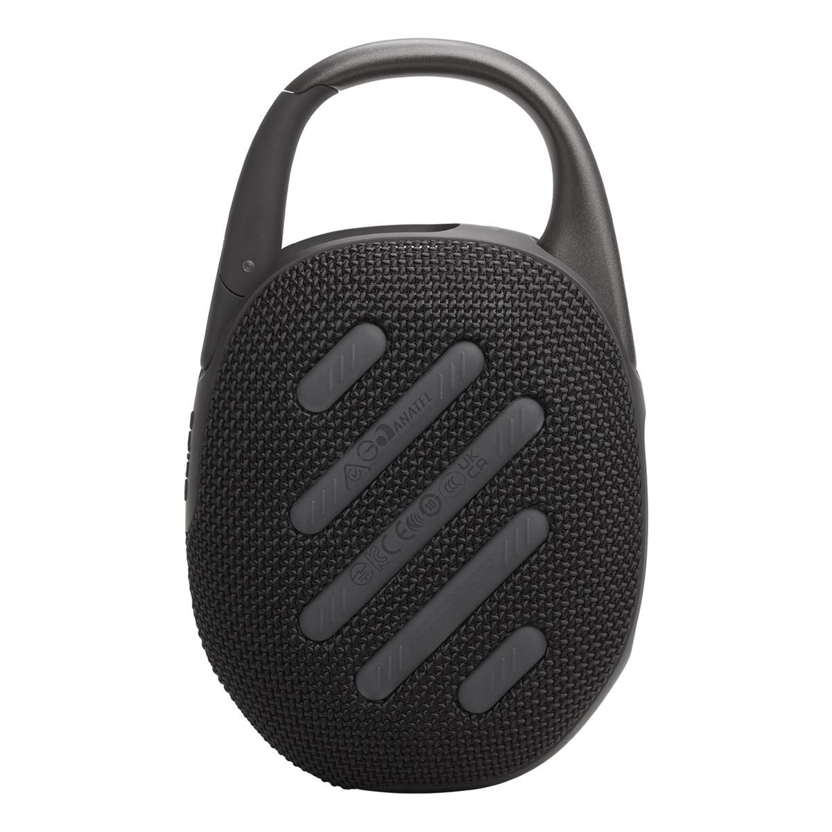 Clip and PlayThe JBL Clip 5 ultra-portable Bluetooth speaker is small enough to hold in one hand but don’t let the size fool you—it’s big where it counts. A wide fully integrated carabiner is big enough to clip to just about anything. The powerful driver and passive radiator deliver bigger louder JBL Pro Sound and punchy bass. A single charge gives you up to 12 hours of playtime—and even more if Playtime Boost is turned on. Speaking of outside it’s IP67-certified waterproof and dustproof so it’s a natural to take on your next hike or camping trip. Pair two Clip 5s together for stereo sound or instantly connect it with multiple JBL Auracast-enabled speakers for even bigger sound over more space. Plus it’s available in a variety of colors so you’re sure to find one that fits your vibe. Every day is an adventure with the JBL Clip 5.