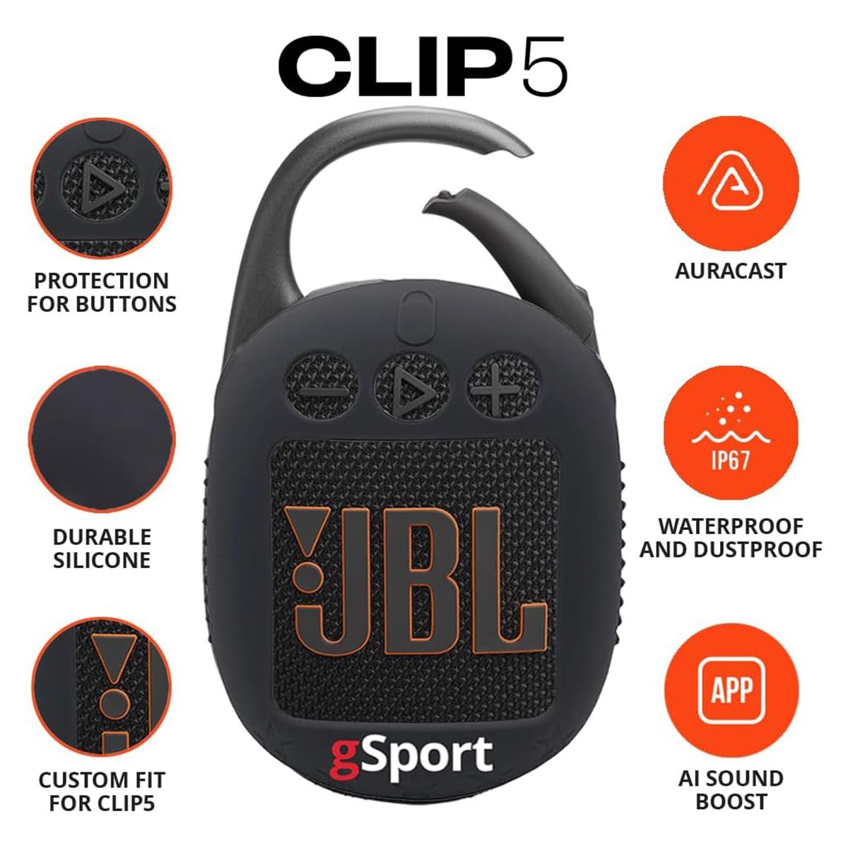 •Clip 5 Ultra Portable Bluetooth Speaker with gSport Silicone Sleeve