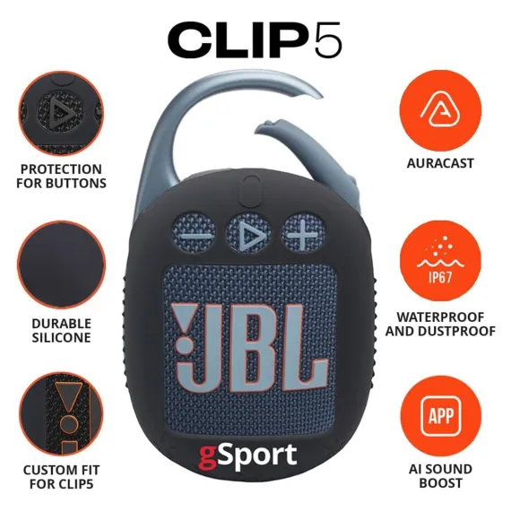 •Clip 5 Ultra Portable Bluetooth Speaker with gSport Silicone Sleeve