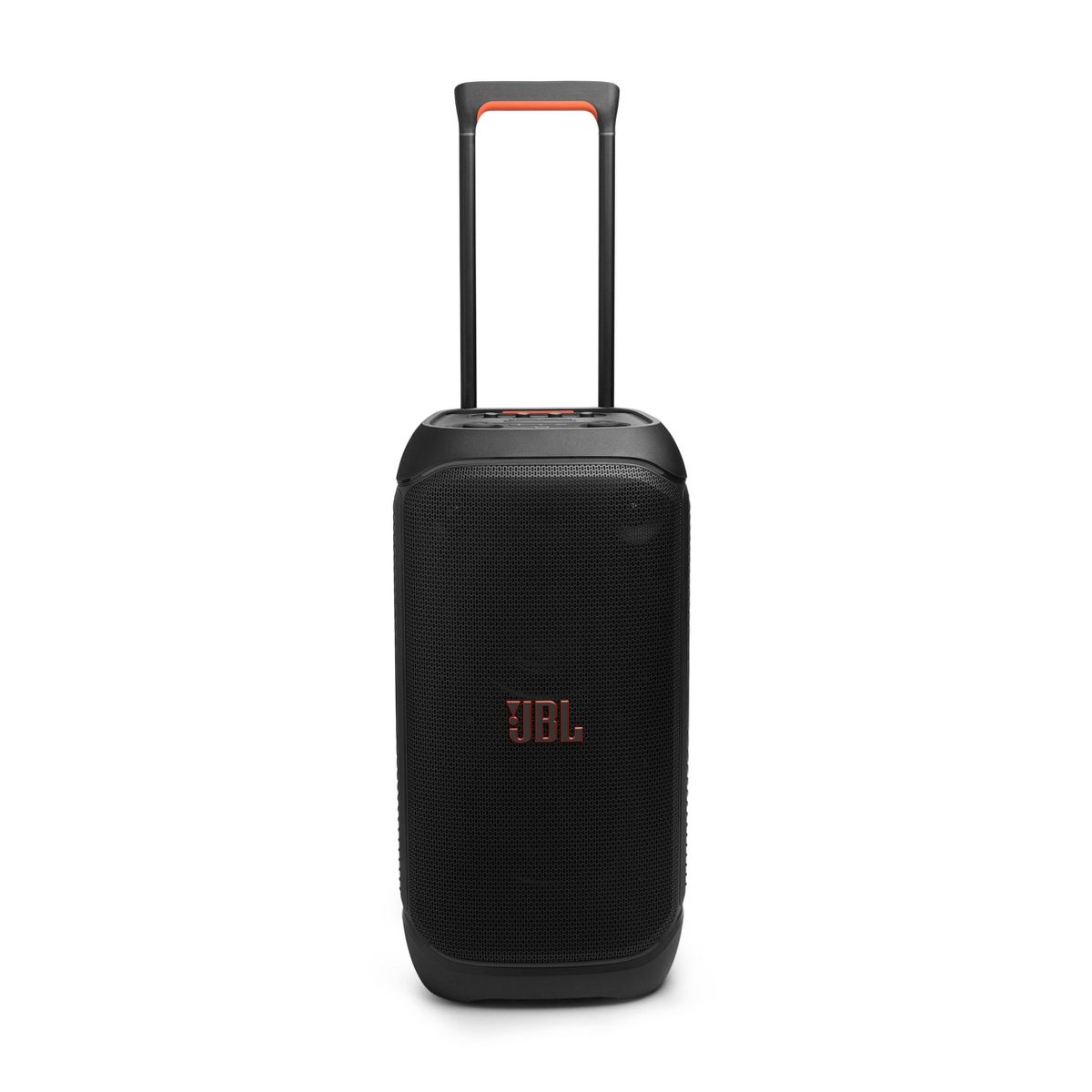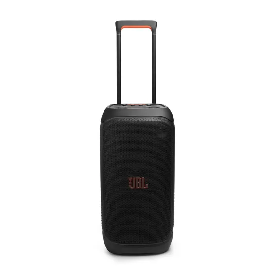 With the JBL PartyBox Stage 320, you can get the party started anytime, anywhere. Transform any space, inside or outdoors, into a dance floor. Powerful JBL Pro Sound and big thumping bass fill a wide soundstage and get the crowd moving, while their eyes are delighted by an adaptive lightshow of swirling starry lights, cool light trails, and amazing strobe effects synced to your beat. Use the mic and guitar inputs to show off your stage presence. You can steer the party's flow throughout the night with fun interactive party effects. The solid telescopic handle and wide, sturdy wheels mean you can roll the JBL PartyBox Stage 320 just about anywhere, and once you're there, the splash-proof construction means a little rain won't ruin the fun. Best of all, it delivers up to 18 hours of playtime—and if the good times are still rolling, just swap out the replaceable battery and keep going. For an even bigger party, it's easy to connect or use the JBL PartyBox app to connect multiple JBL Auracast-enabled speakers wirelessly. Bring people together and elevate the experience with the JBL PartyBox Stage 320.