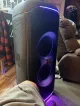 A Multi-Dimensional Dynamic LightshowLights color party! Transform your space into a captivatingfull sensory experience with the biggest multi-dimensional lightshow of any party speaker. Its got a unique starry night effect cool light trails strobes and even lights that project onto any surface its sitting on. All of it syncs to your music and can be easily controlled via the streamlined user-friendly dials on the top panel or through the JBL One app.
