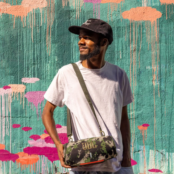 It’s time to live loud! The JBL Xtreme 4 portable waterproof speaker delivers next-level massive JBL Pro Sound with amazing dynamics even at top volume thanks to two powerful woofers and two tweeters. Dual pumping JBL passive radiators give you deeper bass that moves you. Want to take your music outside? The handy shoulder strap makes it easy while the rugged rubber bumpers and IP67 waterproof and dustproof rating mean that a sudden downpour or a dunk in the lake won’t stop the fun. When it’s time to create an even bigger audio experience pair two Xtreme 4s for stereo sound. Or for your next party use Auracast™ to connect the Xtreme 4 with any compatible JBL portable speakers so your friends lounging poolside will vibe to the same playlist as the ones chatting indoors. Up to 24 hours of playtime and a convenient power bank for your device mean you won’t have to recharge until morning. All this plus it’s made with recycled plastic and recycled fabric. The JBL Xtreme 4 brings thrilling sound with you—everywhere.