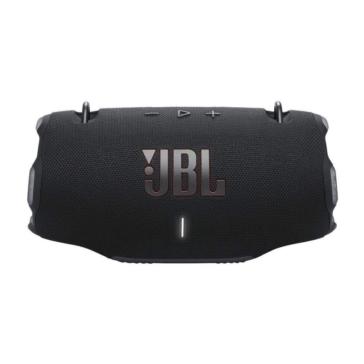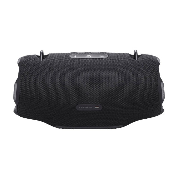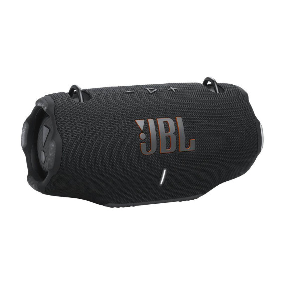 It's time to live loud! The JBL Xtreme 4 portable waterproof speaker delivers next-level massive JBL Pro Sound with amazing dynamics, even at top volume, thanks to two powerful woofers and two tweeters. Dual pumping JBL passive radiators give you deeper bass that moves you. Want to take your music outside? The handy shoulder strap makes it easy, while the rugged rubber bumpers and IP67 waterproof and dustproof rating mean that a sudden downpour or a dunk in the lake won't stop the fun. When it's time to create an even bigger audio experience, pair two Xtreme 4s for stereo sound. Or for your next party, use Auracast to connect the Xtreme 4 with any compatible JBL portable speakers, so your friends lounging poolside will vibe to the same playlist as the ones chatting indoors. 24 hours of playtime and a convenient power bank for your device mean you won't have to recharge until morning. All this, plus it's made with recycled plastic and recycled fabric. The JBL Xtreme 4 brings thrilling sound with you—everywhere.