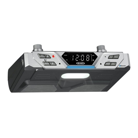 Jensen Under Cabinet Bluetooth Music System with Alexa Far-field and Tap to Talk - Silver: Mounted Speaker with Wi-Fi Streaming Capability