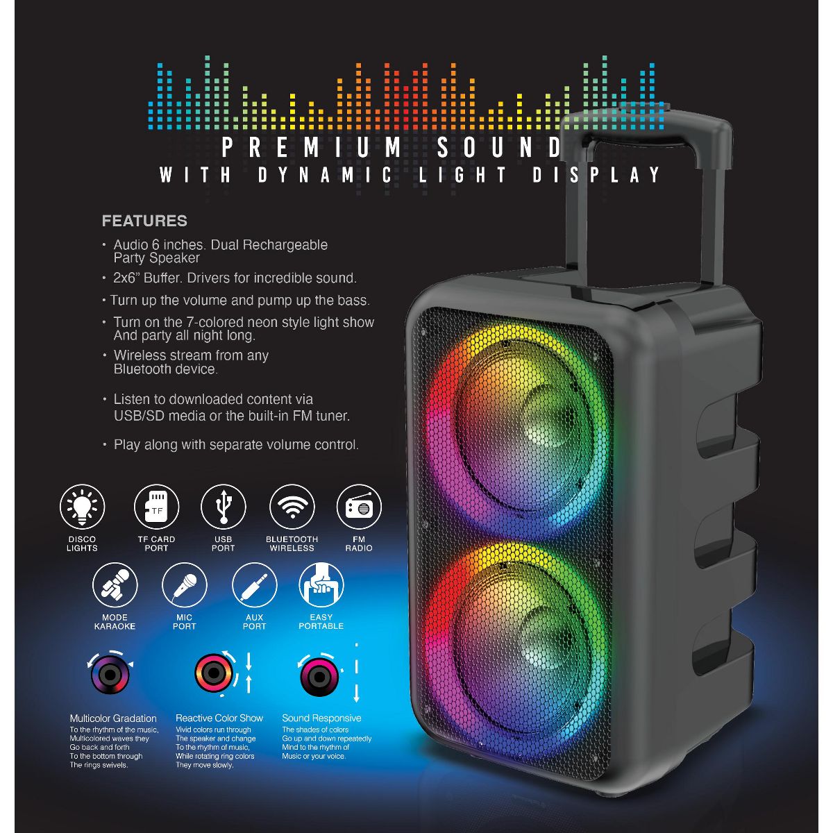 JET-66 Chroma Beat 2x6" Bluetooth Speaker with Disco Lights, Extra Bass & Guitar Jack