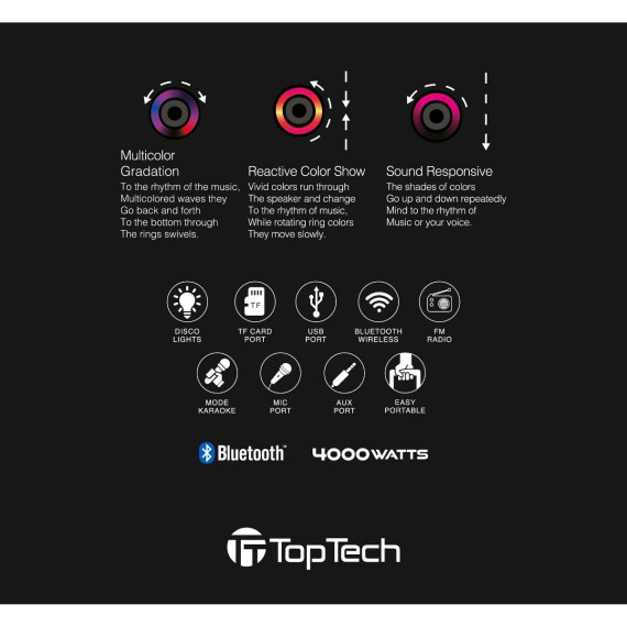 The speaker features dynamic disco lights that pulse and sync with the beat of your music. These lights add an exciting visual experience, creating the perfect party atmosphere. The colors and patterns of the lights make it an attention-grabbing centerpiece for any event.