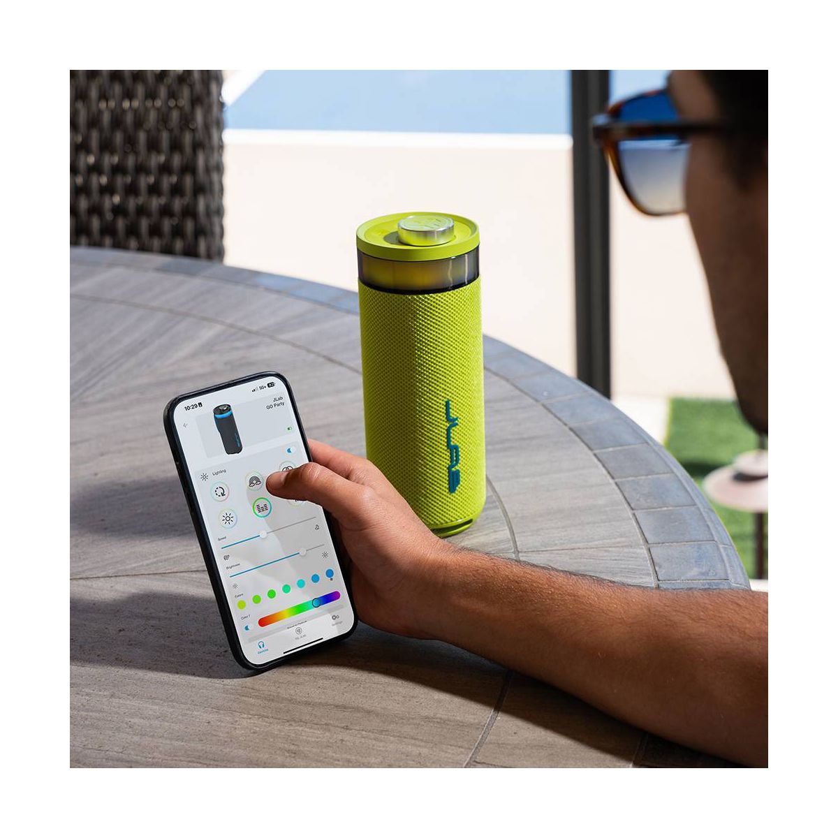 GO get the party started with the Go Party Speaker, where a new level of audio meets non-stop fun. With its sleek cylindrical design, this speaker transforms any space into the perfect party zone. Packing 10 watts of crystal-clear, lab-quality sound, this portable Bluetooth powerhouse lets you customize both audio and lighting effects through the intuitive JLab app, setting the perfect vibe for any gathering. Don't let a splash dampen the celebration – with IPX6 waterproofing, this speaker keeps the party going through any weather. Take your festivities to the next level with JLab Connect mode, and sync up to 100 speakers for the ultimate block party.